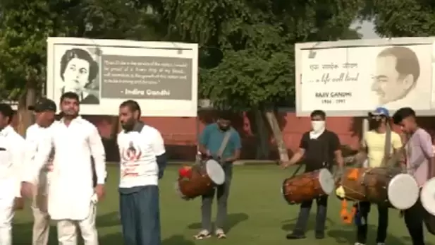 |പാർട്ടി പ്രവർത്തകർ ധോളും നാഗരുമായി ഒത്തുകൂടി
