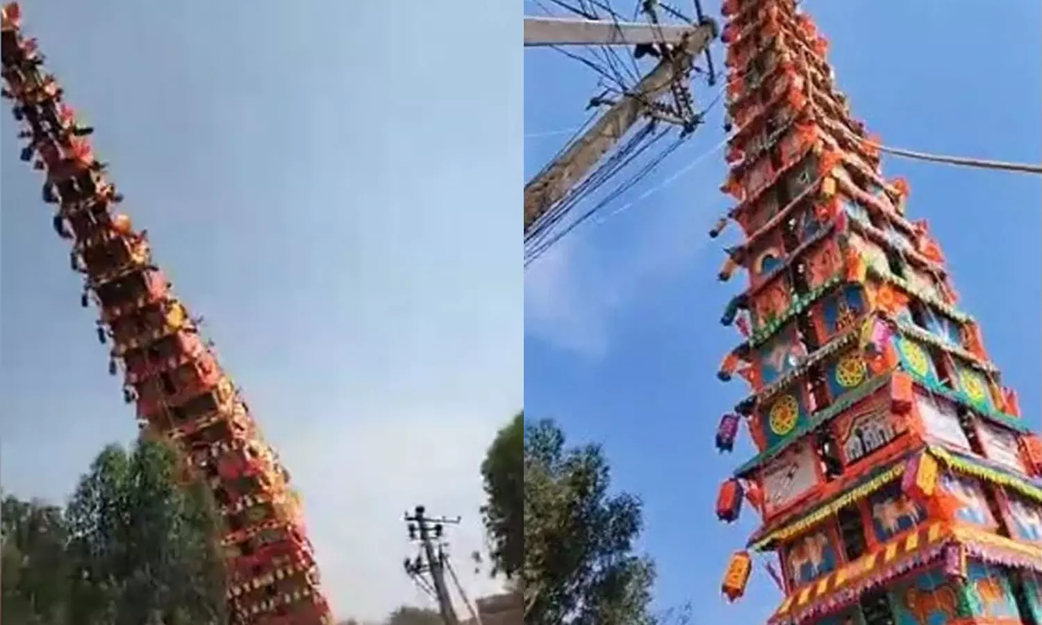 ഉത്സവത്തിനിടെ 120 അടി ഉയരമുള്ള രഥം തകര്ന്നു വീണു