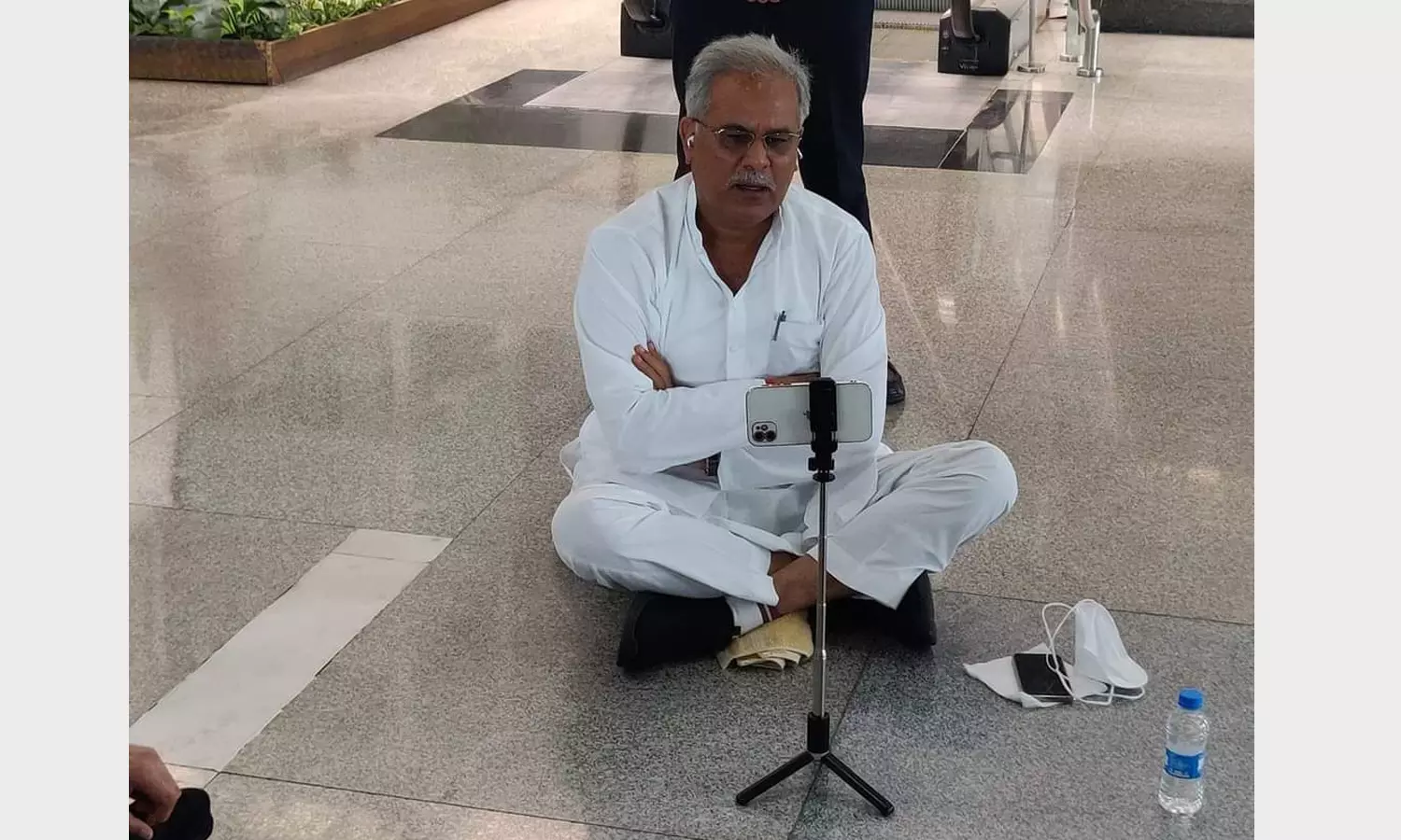 BREAKING: Denied permission to come out of airport, Chhattisgarh CM Bhupesh Baghel sits on a dharna at the Lucknow airport. He was scheduled to address a PC at 2:30 pm.