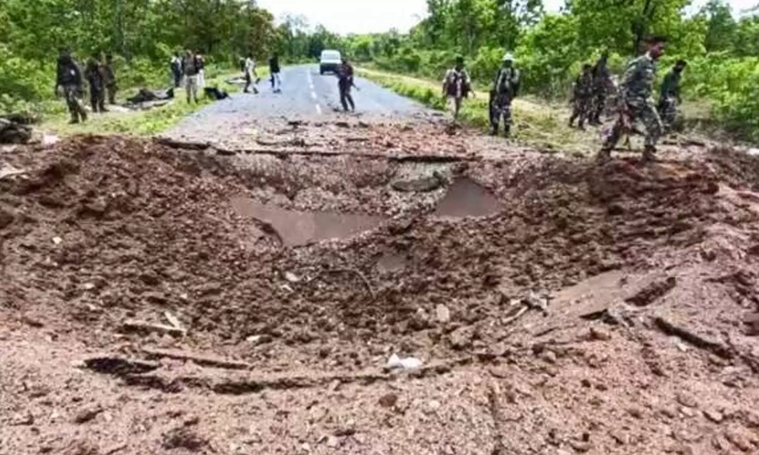 മാവോയിസ്റ്റു വിരുദ്ധ സേനാംഗങ്ങൾ സഞ്ചരിച്ചിരുന്ന വാഹനം കുഴിബോബ് സ്ഫോടനത്തിൽ തകരുകയായിരുന്നു