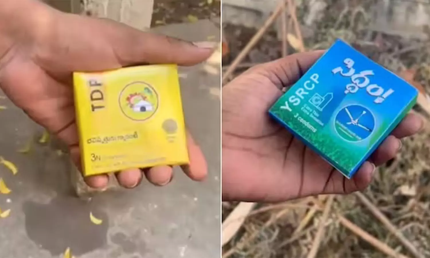 കഴിഞ്ഞദിവസമാണ് പാർട്ടി ചിഹ്നങ്ങൾ പ്രിന്റ് ചെയ്ത കോണ്ടം തെരഞ്ഞെടുപ്പ് പ്രചാരണത്തിന് ഉപയോഗിക്കുന്നതിന്റെ വീഡിയോ പുറത്തുവന്നത്. വൈ.എസ്.ആർ കോൺഗ്രസിന്റെയും പ്രമുഖ പ്രതിപക്ഷമായ തെലുങ്കുദേശം പാർട്ടിയുടെയും ചിഹ്നങ്ങൾ അടയാളപ്പെടുത്തിയ കോണ്ടം പാക്കുകളാണ് വോട്ടർമാർക്കിടയിൽ വിതരണം ചെയ്യുന്നത്.