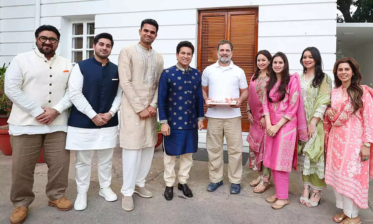 അർജുൻ ടെണ്ടുൽക്കറുടെയും സാനിയയുടെയും വിവാഹത്തിന് രാഷ്ട്രീയ പ്രമുഖരെ ക്ഷണിക്കാൻ രണ്ട് ദിവസം മുമ്പാണ് സച്ചിനും കുടുംബവും ഡൽഹിയിലെത്തിയത്. ഫെബ്രുവരി 10-ന് വൈകുന്നേരം മുതൽ സച്ചിൻ പ്രമുഖരെ സന്ദർശിക്കുന്ന ചിത്രങ്ങൾ എക്സിൽ പങ്കുവെച്ചിരുന്നു. ആദ്യം വൈകീട്ട് 7:13ന് പ്രധാനമന്ത്രി നരേന്ദ്ര മോദിക്കൊപ്പമുള്ള ചിത്രം പോസ്റ്റ് ചെയ്തു. ഇതിനുശേഷം 8:18ന് ആഭ്യന്തര മന്ത്രി അമിത് ഷായ്ക്കും 8:48ന് രാഷ്ട്രപതി ദ്രൗപദി മുർമുവിനുമൊപ്പമുള്ള ചിത്രങ്ങൾ പങ്കുവച്ചു. ഇതിനെല്ലാം ശേഷം രാത്രി 9:22നായിരുന്നു പ്രതിപക്ഷനേതാവ് രാഹുൽ ഗാന്ധിയെ കണ്ട ചിത്രം പോസ്റ്റ് ചെയ്തത്.
