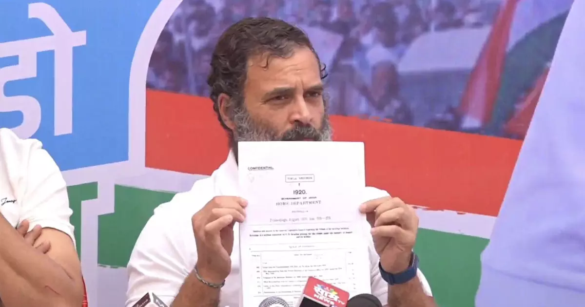 Congress leader Rahul Gandhi with VD Savarkar's letter stating that he wants to be a servant of the British.