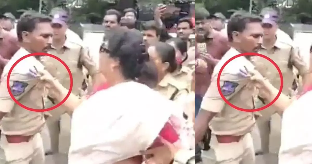 Congress leader Renuka Chaudhary grabbed a policeman by the collar.