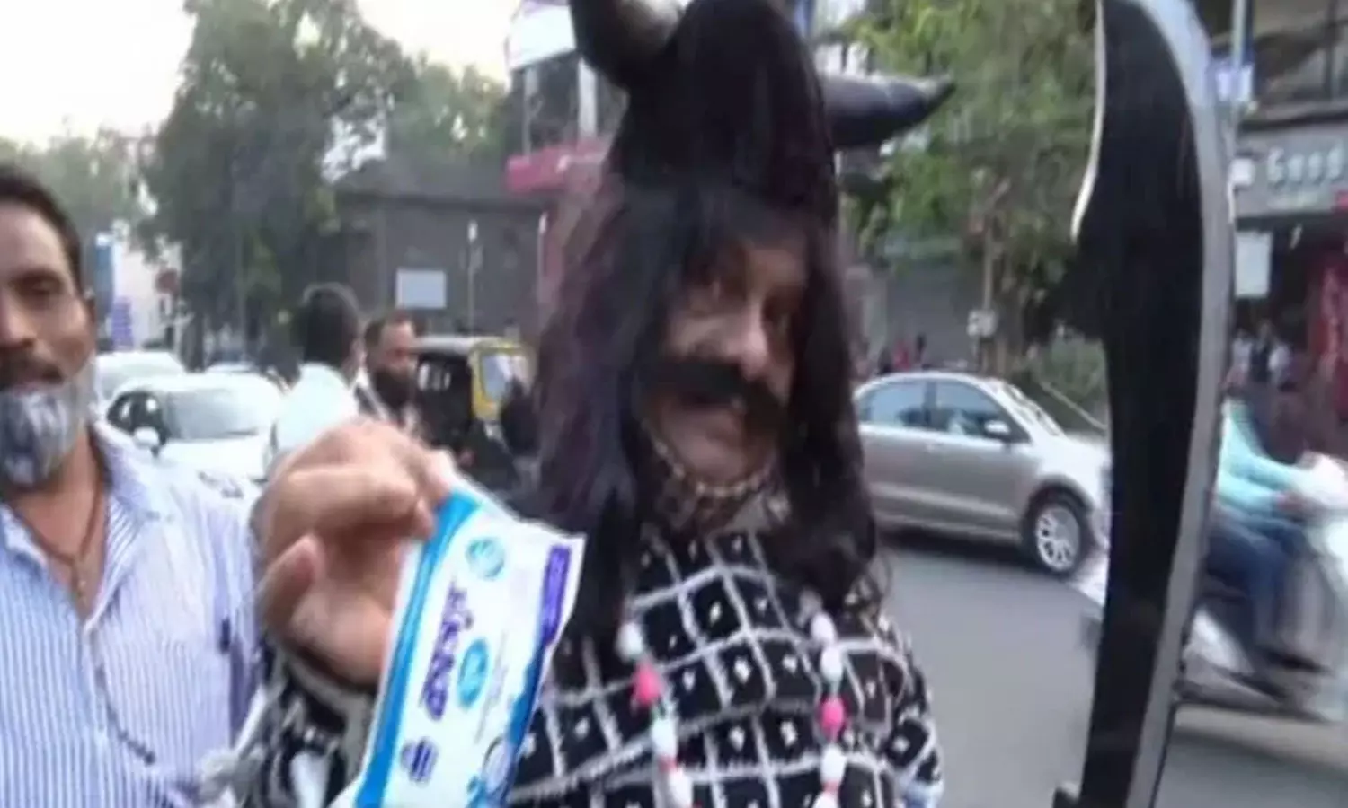 'മദ്യം വേണ്ട, പാൽ കുടിക്കൂ', ബോധവത്കരണവുമായി റോഡിലിറങ്ങി 'രാവണൻ'