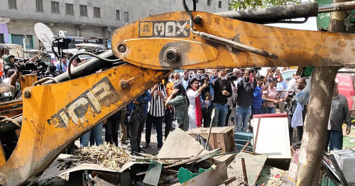 ജഹാംഗീർപുരിയിലെ വീടുകളും ചെറിയ കടകളും പൊളിച്ച് ജെസിബി മുന്നോട്ട് നീങ്ങുന്നതിനിടെയാണ് ഇന്നലെ തല്സ്ഥിതി തുടരാന് സുപ്രിംകോടതിയുടെ ഉത്തരവ് വന്നത്. കോടതി ഉത്തരവ് ചൂണ്ടിക്കാട്ടി കെട്ടിടങ്ങൾ പൊളിക്കുന്നത് നിർത്തി വെക്കണം എന്ന് പ്രദേശവാസികൾ അധികൃതരോട് അഭ്യർഥിച്ചു. എന്നാൽ കോടതി ഉത്തരവ് തങ്ങൾക്ക് ലഭിച്ചില്ല എന്നായിരുന്നു ഡൽഹി മുനിസിപ്പൽ കോർപ്പറേഷൻ അധികൃതരുടെ വാദം. കെട്ടിടങ്ങൾ ജെസിബി ഉപയോഗിച്ച് പൊളിക്കുന്നത് തുടരുന്നതിനിടെയാണ് ബൃന്ദ കാരാട്ട് ജഹാംഗീർപുരിയിൽ എത്തിയത്. കെട്ടിടങ്ങൾ പൊളിക്കാൻ ഒരുങ്ങിയ ജെസിബിയുടെ മുന്നിൽ കയറി നിന്ന് ബൃന്ദ കാരാട്ട് തടഞ്ഞു. കോടതി ഉത്തരവിന്റെ പകർപ്പ് ഫോണിൽ അധികൃതരെ കാണിച്ചു കൊണ്ടാണ് ബൃന്ദ കാരാട്ട് സംസാരിച്ചത്. ബിജെപി ബുൾഡോസർ രാഷ്ട്രീയമാണ് നടത്തുന്നത് എന്ന് ബൃന്ദ കാരാട്ട് പറഞ്ഞു.