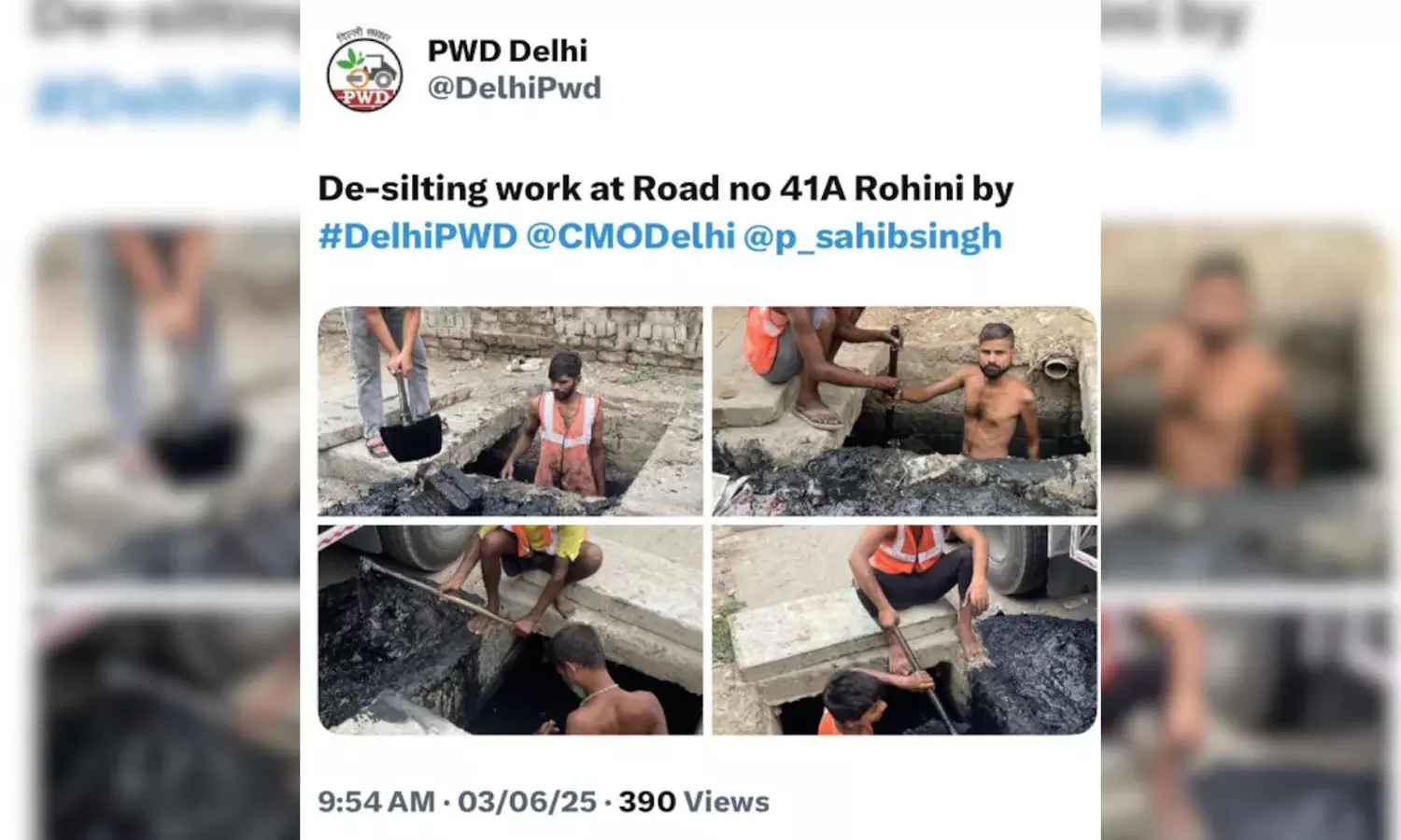 ഡ്രെയിനിൽ ഇറങ്ങുന്ന തൊഴിലാളികളുടെ ചിത്രങ്ങൾ പോസ്റ്റ് ചെയ്ത് ഡൽഹി പിഡബ്ല്യുഡി; വിവാദമായപ്പോൾ ഡിലീറ്റ് ചെയ്തു