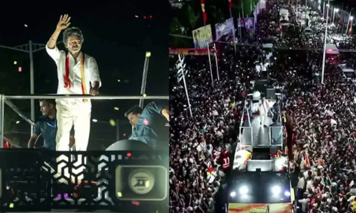 കരൂരില് സംഘടിപ്പിച്ച വിജയ്യുടെ റാലി | Photo TVK X Account'റാലിക്കെത്താൻ മനപ്പൂർവം വൈകി': കരൂർ ദുരന്തത്തിൽ വിജയ്ക്കെതിരെ ഗുരുതര കണ്ടെത്തലുമായി പൊലീസ്