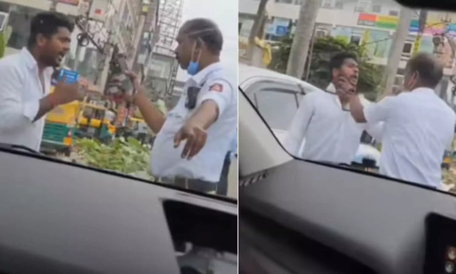 പാർക്കിങ്ങിനെ ചൊല്ലി തർക്കം; കോളറിൽ പിടിച്ച് പൊലീസ്, തിരിച്ചു പിടിച്ച് ഡ്രൈവർ; വീഡിയോ