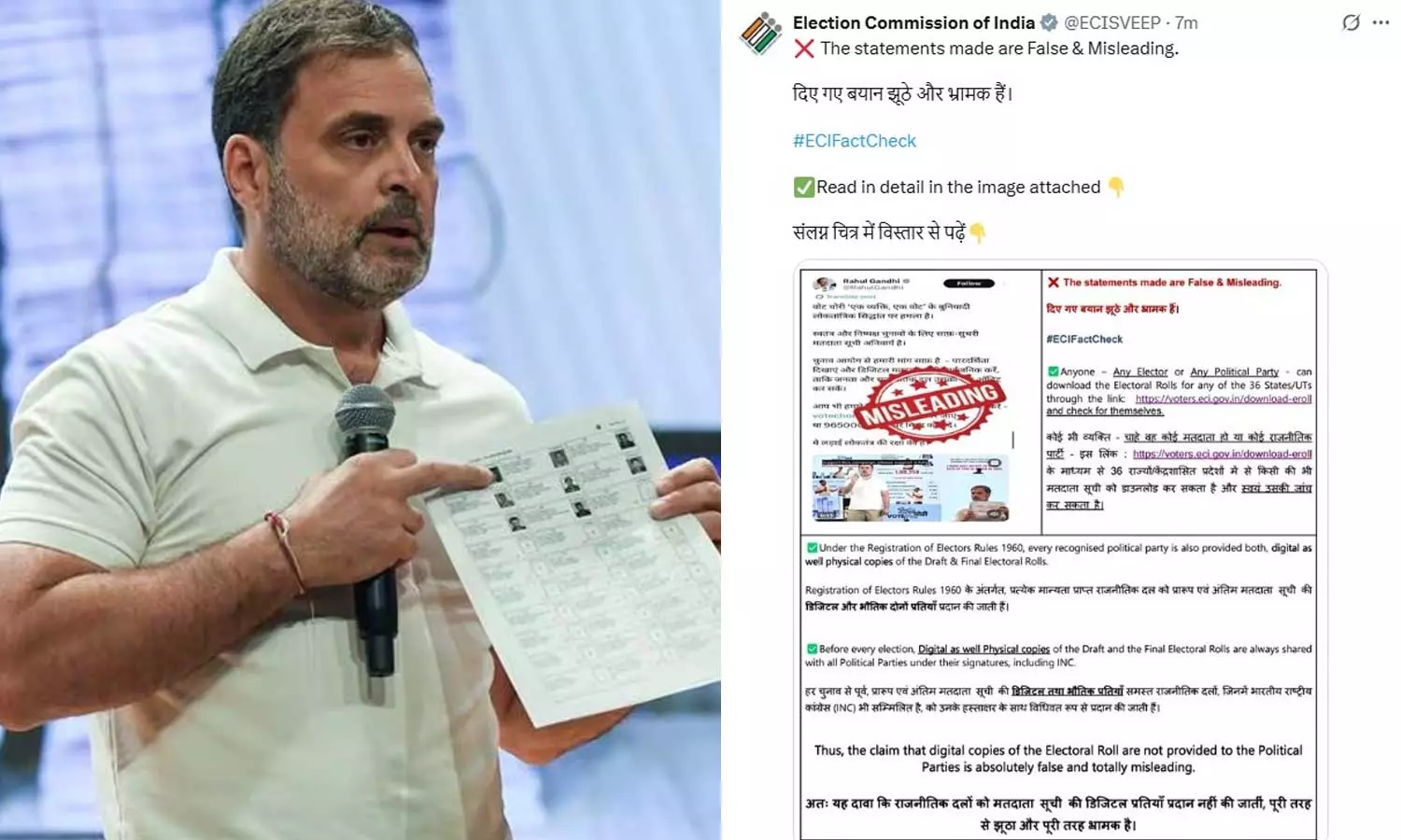 രാഹുൽ ഗാന്ധിയുടെ വാദങ്ങൾ അടിസ്ഥാനരഹിതമാണെന്നും രാഷ്ട്രീയപാർട്ടികൾക്ക് വോട്ടർപട്ടികയുടെ ഡിജിറ്റൽ കോപ്പി ലഭ്യമാക്കാറുണ്ടെന്നും തെരഞ്ഞെടുപ്പ് കമ്മീഷൻ.