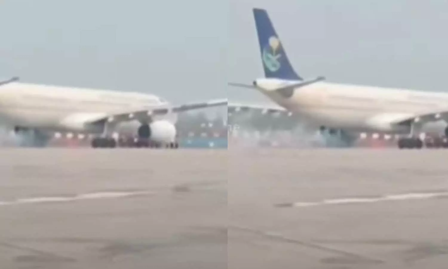 ലഖ്നൗവിലെ ചൗധരി ചരൺ സിംഗ് അന്താരാഷ്ട്ര വിമാനത്താവളത്തില് ഇറങ്ങുമ്പോഴാണ് ഇടത് ചക്രത്തിൽനിന്നും തീയും പുകയും കണ്ടത്. ജിദ്ദയില് നിന്ന് ശനിയാഴ്ച രാത്രി 10.40 ന് പുറപ്പെട്ട വിമാനത്തിലാണ് പ്രശ്നമുണ്ടായത്.