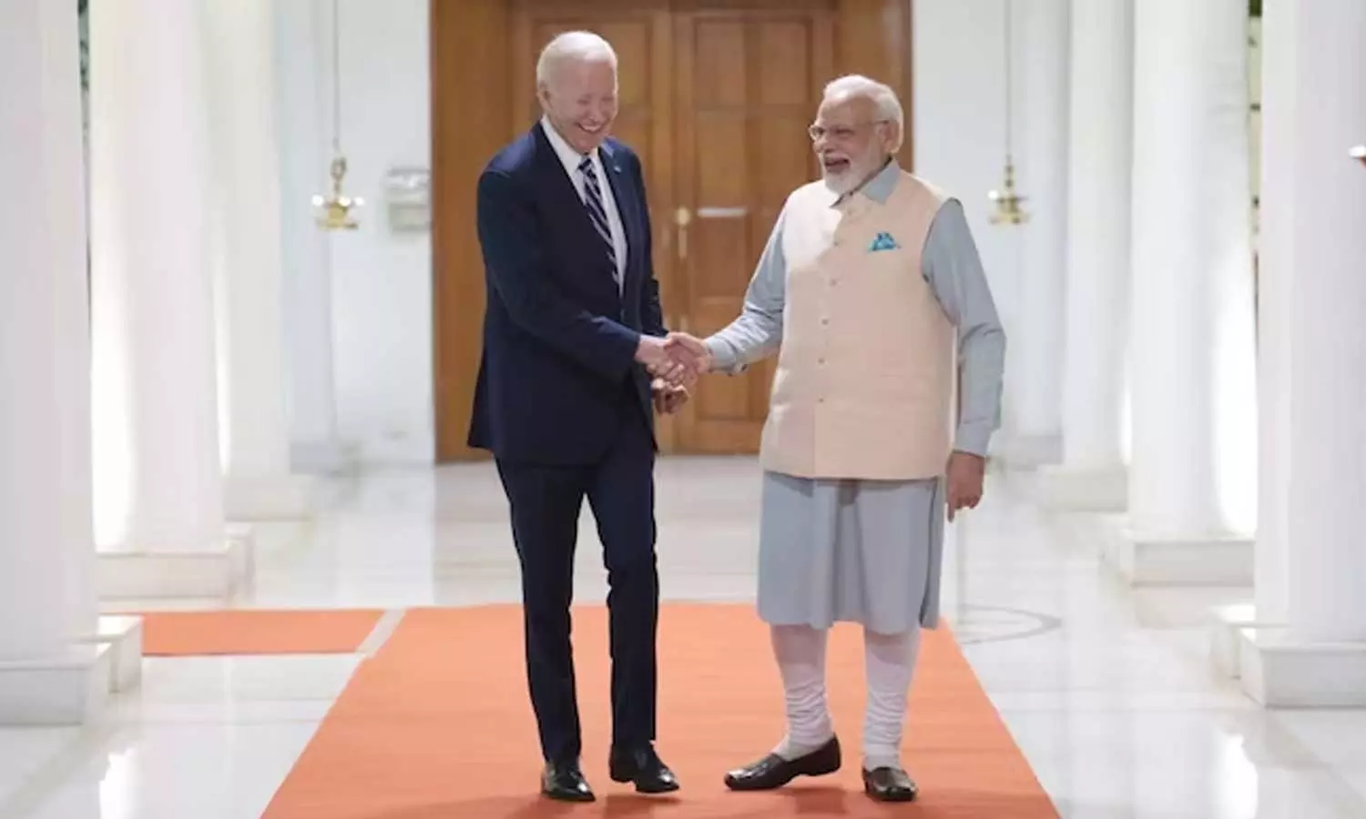 ഇന്ന് രാത്രി ഏഴു മണിയോടെയാണ് ജോ ബൈഡൻ ഇന്ത്യയിലെത്തിയത്. തുടർന്നാണ് ബൈഡൻ പ്രധാനമന്ത്രി നരേന്ദ്രമോദിയുമായി കൂടികാഴ്ച്ച നടത്തിയത്. ഒരു മണിക്കൂറോളം നീണ്ടു നിന്ന ചർച്ചയിൽ ഇരു രാജ്യങ്ങളും തമ്മിലുള്ള സഹകരണത്തിന് ധാരണയായി. ഇതുകൂടാതെ ഇരു രാജ്യങ്ങളും തന്ത്രപ്രധാനമായ പങ്കാളികളാണെന്ന് ആവർത്തിച്ചു കൊണ്ട് നിരവധി മേഖലകളിൽ ഒരുമിച്ചു പ്രവർത്തിക്കാൻ തീരുമാനമുണ്ടായി. അമേരിക്കയിൽ നിന്ന് ഇന്ത്യ 31 ആക്രമണ ഡ്രോണുകൾ വാങ്ങുന്നതിൽ നിന്ന് തുടങ്ങി ജെറ്റിന്റെ നിർമാണത്തിൽ വരെ യോജിച്ച് പ്രവർത്തിക്കും.
