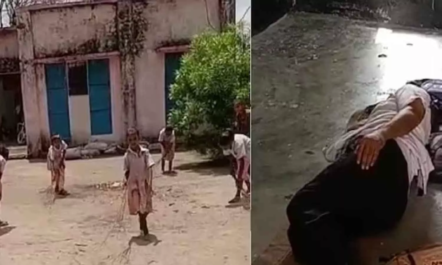 കുട്ടികളെ മുറ്റമടിക്കാൻ വിട്ടു; സ്കൂൾ ബാഗ് തലയണയാക്കി ക്ലാസ് മുറിയിൽ അധ്യാപകന്റെ ഉറക്കം