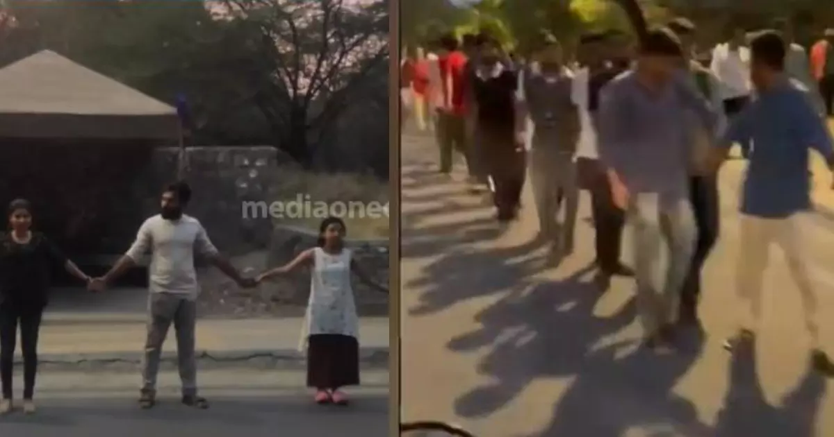 ജെ.എൻ.യുവിൽ വിദ്യാർഥികളുടെ മനുഷ്യ ചങ്ങല; സർവകലാശാല അധികൃതരുടെ നിലപാടിൽ പ്രതിഷേധം ശക്തമാകുന്നു
