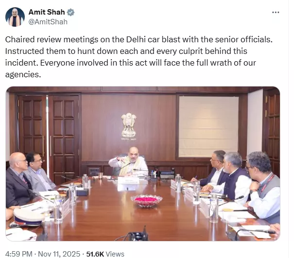 ന്യൂഡൽഹി: ഡൽഹി സ്ഫോടനത്തിൽ കേന്ദ്ര ഏജൻസികൾക്ക് ആഭ്യന്തരമന്ത്രി അമിത് ഷായുടെ കർശന നിർദേശം. പ്രതികളായവരെ വേട്ടയാടി പിടിക്കണമെന്ന് നിർദേശം നൽകി. മുതിർന്ന ഉദ്യോഗസ്ഥരുമായുള്ള അവലോകന യോഗങ്ങൾ വിളിച്ചുചേർത്തതായി അദ്ദേഹം എക്സ് പോസ്റ്റിൽ പറഞ്ഞു.