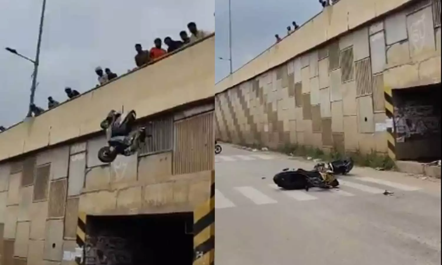 ആഗസ്ത് 15ന് ബെംഗളൂരുവിനടുത്തുള്ള നെലമംഗല ടൗണിലെ മേൽപ്പാലത്തിൽ ചിലർ ഇരുചക്രവാഹനങ്ങളിൽ അപകടകരമാം വിധം അഭ്യാസപ്രകടനം നടത്തുന്നതിനിടെയാണ് സംഭവം. അഭ്യാസപ്രകടനം നടത്തിയവർ ഉടൻ തന്നെ സ്ഥലം കാലിയാക്കി.