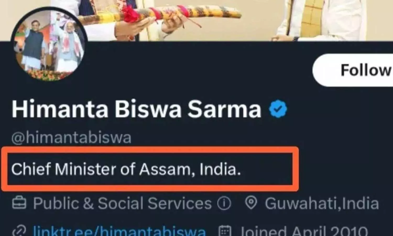 |'അസം മുഖ്യമന്ത്രി, ഇന്ത്യ' എന്നായിരുന്നു പഴയ ട്വിറ്റർ ബയോയിലുണ്ടായിരുന്നത്