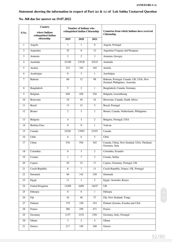 |ഏറ്റവുമധികം ആളുകൾ ഇന്ത്യന് പൗരത്വം ഉപേക്ഷിച്ച് പോയിരിക്കുന്നത് അമേരിക്കയിലേക്കാണ്