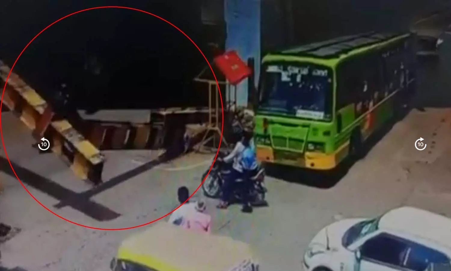സംഭവത്തിന്റെ സി.സി.ടി.വി ദൃശ്യങ്ങൾ പുറത്ത് വന്നിട്ടുണ്ട്. തൂൺ തകർന്ന് വീഴുന്നതും, വാട്ടർ ടാങ്കും മോട്ടോർ സൈക്കിളുകളും തലനാരിഴക്ക് രക്ഷപെടുന്നതും വീഡിയോയിൽ കാണാം.
