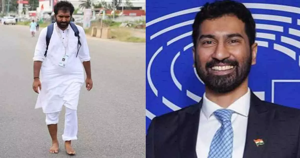 |'ഒരാള് രാജ്യത്തെ ഒന്നിപ്പിക്കാന് ഭാരത് ജോഡോ യാത്രയില് നഗ്നപാദനായി അക്ഷീണം നടക്കുന്നു. മറ്റെയാള് പാര്ട്ടിയോടും യാത്രയോടുമുള്ള കടമകള് മറന്നു'