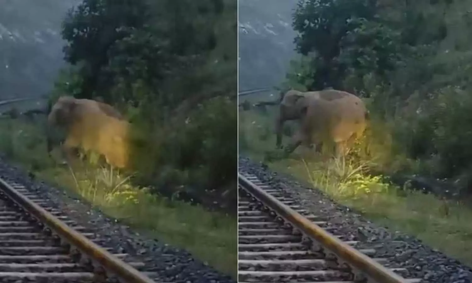 റെയിൽവെ ട്രാക്കിനരികിൽ ആനയ്ക്ക് സുഖപ്രസവം: രണ്ട് മണിക്കൂർ ട്രെയിൻ സർവീസ് നിർത്തിവെച്ച് അധികൃതർ