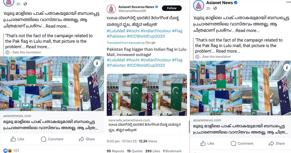 ലുലുമാളിലെ പാക് കൊടി; ഏഷ്യാനെറ്റ് കന്നട പതിപ്പിന്റെ വ്യാജവാർത്തയ്ക്ക് മലയാളം ഏഷ്യാനെറ്റിന്റെ ഫാക്ട് ചെക്ക്