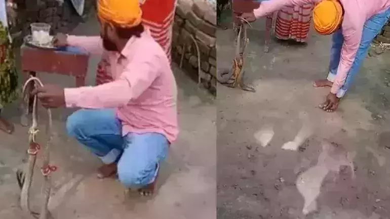 സംഭവത്തിന്റെ വീഡിയോ ദൃശ്യങ്ങള് സമൂഹമാധ്യമങ്ങളിലൂടെ പ്രചരിക്കുന്നുണ്ട്. കഴിഞ്ഞ ഇരുപത് വര്ഷത്തിനിടെ പന്ത്രണ്ടു ലക്ഷം പേരാണ് രാജ്യത്ത് പാമ്പു കടിയേറ്റ് മരിച്ചതെന്നാണ് റിപ്പോര്ട്ട്. 58,000 പേര് പ്രതിവര്ഷം പാമ്പു കടിയേറ്റു മരിക്കുന്നുണ്ട്.