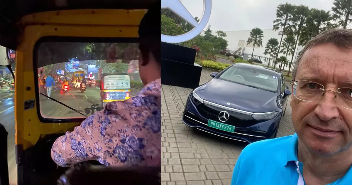 മേഴ്സിഡസ് ബെൻസ് എസ് ക്ലാസ് ഗതാഗത കുരുക്കിൽപ്പെട്ടു; ഓട്ടോവിളിച്ച് കമ്പനി സി.ഇ.ഒ