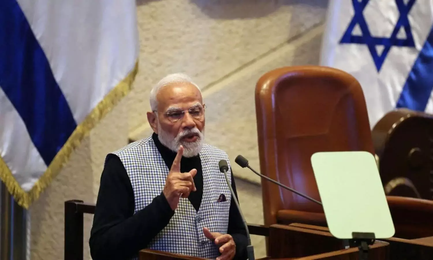 ഇസ്രായേൽ നെസറ്റിൽ സംസാരിക്കുന്ന നരേന്ദ്ര മോദി Image: AFP