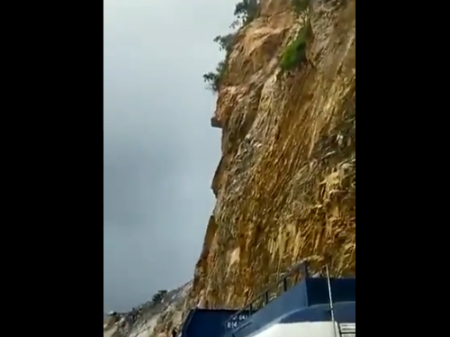 യാത്രക്കാര് നോക്കിനില്ക്കെ കൂറ്റന്മലയിടിഞ്ഞു റോഡിലേക്ക്; വീഡിയോ