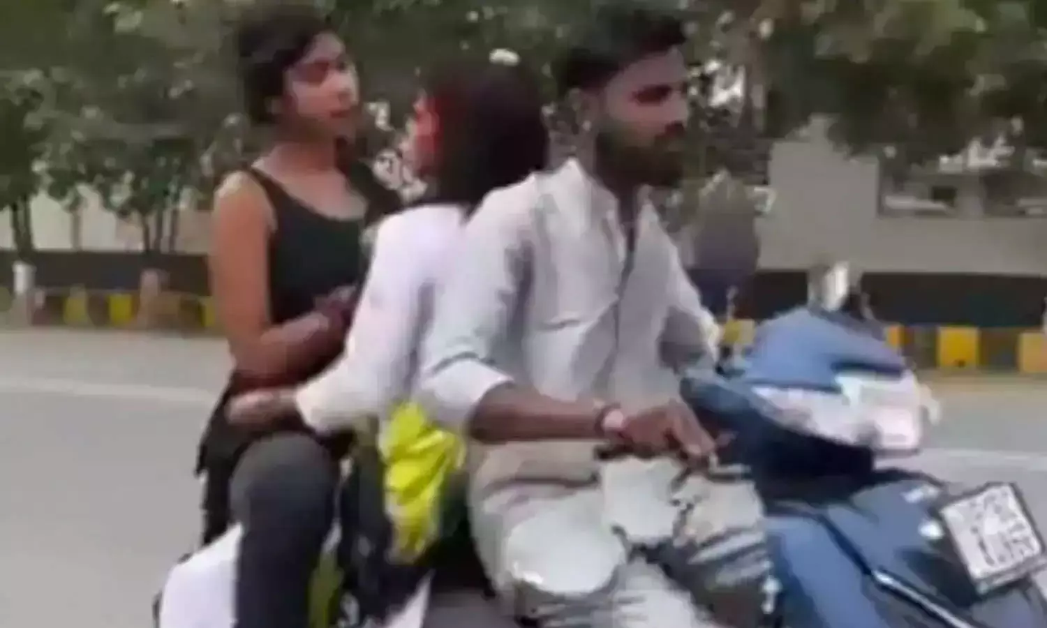 സ്കൂട്ടറിലിരുന്ന് ഹോളി വീഡിയോ; എട്ടിന്റെ പണി കൊടുത്ത് പൊലീസ്, 33,000 രൂപക്ക് പുറമെ 47,500 രൂപ കൂടി പിഴ ചുമത്തി