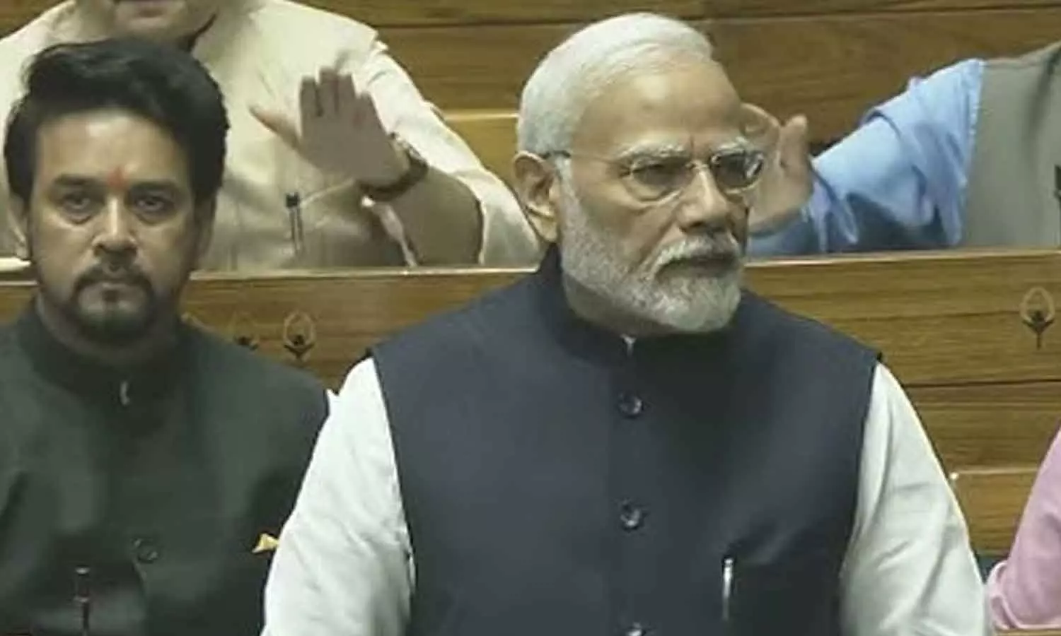 ഇന്ത്യൻ ഭരണഘടനയുടെ 75ാം വാർഷികത്തോടനുബന്ധിച്ചാണ് ലോക്സഭയിൽ ഭരണഘടനാ ചർച്ച സംഘടിപ്പിച്ചത്. ഭരണഘടനാ ശില്പികളെ സ്മരിച്ച മോദി ഭരണഘടനയെ ശക്തിപ്പെടുത്തുന്നതിൽ സ്ത്രീകൾക്കുള്ള പങ്ക് പരാമർശിച്ചാണ് പ്രസംഗം തുടങ്ങിയത്. ഭാവി ഇന്ത്യയെ കുറിച്ചുള്ള പ്രതീക്ഷകൾ പങ്കു വച്ച മോദി, പ്രസംഗത്തിൽ ഭരണനേട്ടങ്ങളും എണ്ണിപ്പറഞ്ഞു.