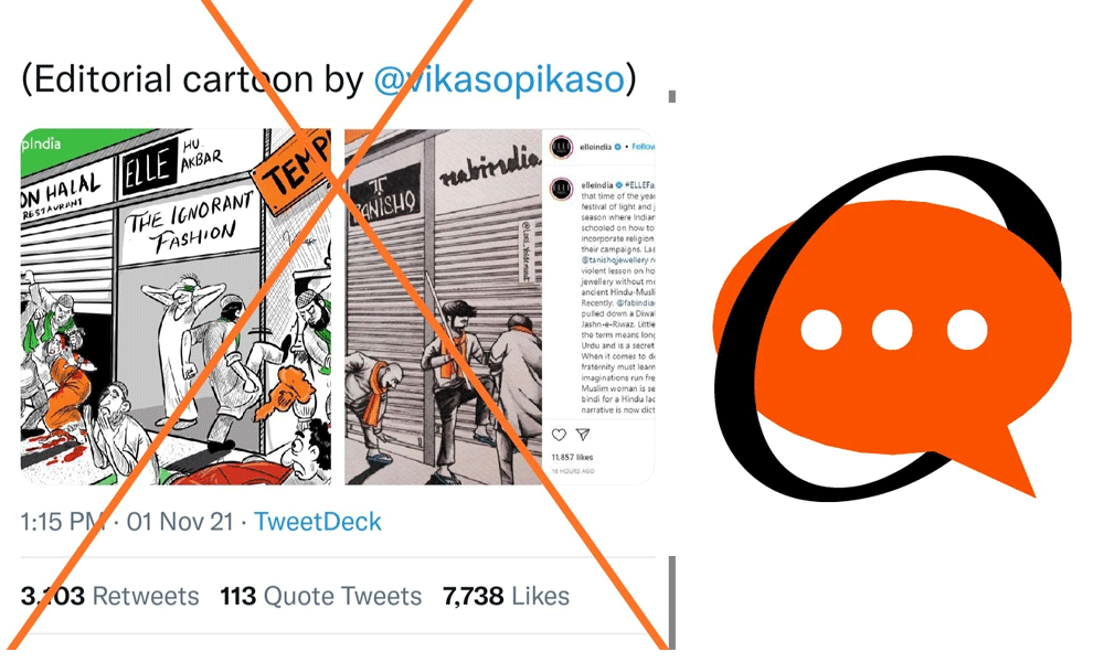 |കൊച്ചിയിൽ നോൺ ഹലാൽ ഭക്ഷണം വിളമ്പിയതിന് മർദിച്ചുവെന്ന വ്യാജ വാർത്തയോടൊപ്പം സംഘപരിവാർ അനുകൂല മാധ്യമമായ ഓപ് ഇന്ത്യ പോസ്റ്റ് ചെയ്ത കാർട്ടൂൺ നീക്കം ചെയ്ത് ട്വിറ്റർ. വർഗീയത നിറഞ്ഞ ട്വീറ്റിനെതിരെ നിരവധി ട്വിറ്റർ ഉപയോക്താക്കൾ വിമർശനവുമായി രംഗത്ത് വന്നിരുന്നു. ഹിന്ദിയിലും ഇംഗ്ലീഷിലുമുള്ള നിരവധി സംഘപരിവാർ അനുകൂല മാധ്യമങ്ങൾ മതസ്പർധ വളർത്തുന്ന രീതിയിൽ ഈ വാർത്ത നൽകിയതായി പ്രമുഖ ഫാക്ട് ചെക്കിങ് വെബ്സൈറ്റ് ആൾട്ട് ന്യൂസ് സ്ഥാപകരിൽ ഒരാളായ മുഹമ്മദ് സുബൈർ ട്വിറ്ററിൽ കുറിച്ചു.
