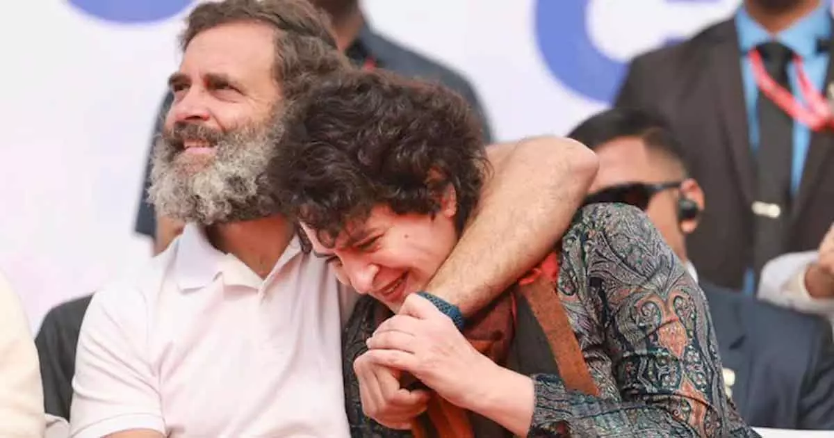 പ്രിയങ്കയെ സ്നേഹത്താല് പൊതിഞ്ഞ് രാഹുല്