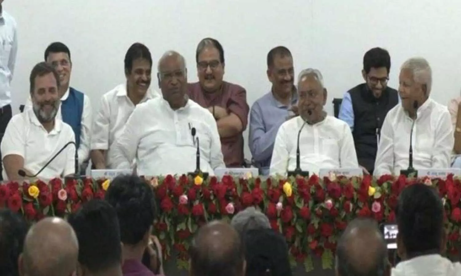 ബിഹാർ മുഖ്യമന്ത്രി നിതീഷ് കുമാറിന്റെ അധ്യക്ഷതയിലായിരുന്നു ഇന്നലെ യോഗം ചേർന്നത്. കോൺഗ്രസ് അധ്യക്ഷൻ മല്ലികാർജുൻ ഖാർഗെ, രാഹുൽ ഗാന്ധി, ലാലുപ്രസാദ് യാദവ്, മമത ബാനർജി, അരവിന്ദ്ര് കെജ്രിവാൾ, ഭഗവന്ത് മൻ, ശരദ് പവാർ, ഉദ്ദവ് താക്കറെ, അഖിലേഷ് യാദവ്, മെഹബൂബ മുഫ്തി, ഉമർ അബ്ദുല്ല, ഡി. രാജ എന്നിവരെല്ലാം യോഗത്തിൽ സംബന്ധിച്ചു.