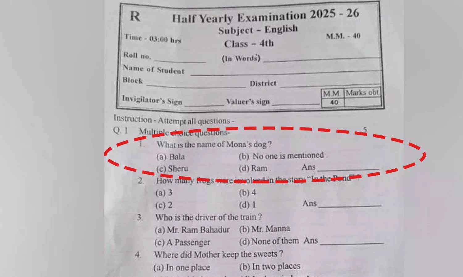 'ചോദ്യപേപ്പറിൽ നായയുടെ പേരിന് ഓപ്ഷനായി 'റാം'; മതനിന്ദയെന്ന് ഹിന്ദുത്വ സംഘടനകൾ , ഛത്തീസ്ഗഢില് വിവാദം