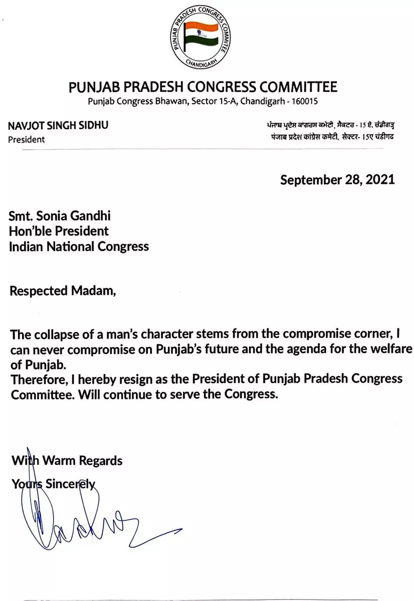 മുന് മുഖ്യമന്ത്രി അമരീന്ദര് സിങ്ങുമായുള്ള അഭിപ്രായ ഭിന്നതയെ തുടര്ന്ന് ആഭ്യന്തര പ്രശ്നങ്ങള് പരിഹരിക്കാനുള്ള സമവായ ഫോര്മുലയുടെ ഭാഗമായാണ് സിദ്ദുവിനെ ഹൈക്കമാന്ഡ് പി.സി.സി അധ്യക്ഷനാക്കിയത്. 72 ദിവസമാണ് സിദ്ദു പ്രസിഡന്റ് പദവിയിലിരുന്നത്.