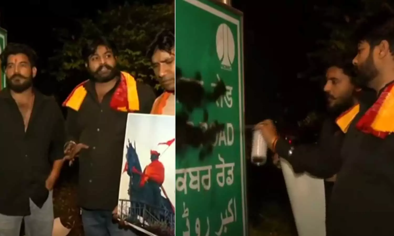 ഛത്രപതി സംബാജിയെക്കുറിച്ചുള്ള 'ഛാവ' സിനിമ കണ്ടിറങ്ങിയ സംഘം, അക്ബർ റോഡിന്റെയും ഹുമയൂൺ റോഡിന്റെയും പേരുകളെഴുതിയ സൈൻബോർഡുകൾ നേരത്തെ വികൃതമാക്കിയിരുന്നു. സംഭവത്തിന് പിന്നാലെ പൊലീസ് സ്ഥലത്തെത്തി വികൃതമാക്കിയ ബോര്ഡുകള് ശരിയാക്കുകയും ചെയ്തു. തുടര്ന്ന് അന്വേഷണം പ്രഖ്യാപിച്ചെങ്കിലും പ്രതികളെ ഇതുവരെ പിടികൂടിയില്ല.
