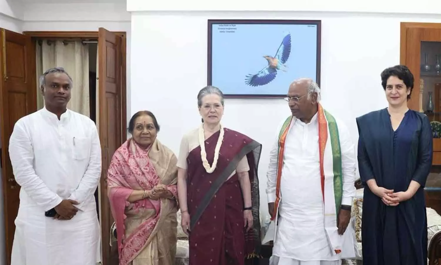 സോണിയയും പ്രിയങ്കയും ഖാർഗെയുടെ വസതിയിലെത്തി ആശംസയറിയിച്ചു