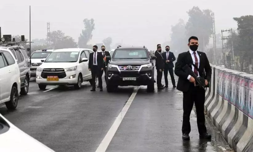 കർഷക പ്രതിഷേധക്കാർ റോഡ് ഉപരോധിച്ചതോടെ പഞ്ചാബിലെ ഹുസൈനിവാലയിലെ രക്ഷസാക്ഷി സ്മാരകത്തിൽ നിന്ന് 30 കിലോമീറ്റർ അകലെയുള്ള മേൽപാലത്തിലാണ് മോദിയുടെ വാഹനവ്യൂഹം കുടുങ്ങിയത്. ഗുരുതരമായ സുരക്ഷാ വീഴ്ച എന്നാണ് ആഭ്യന്തര മന്ത്രാലയം ഇതിനെ വിശേഷിപ്പിച്ചത്.