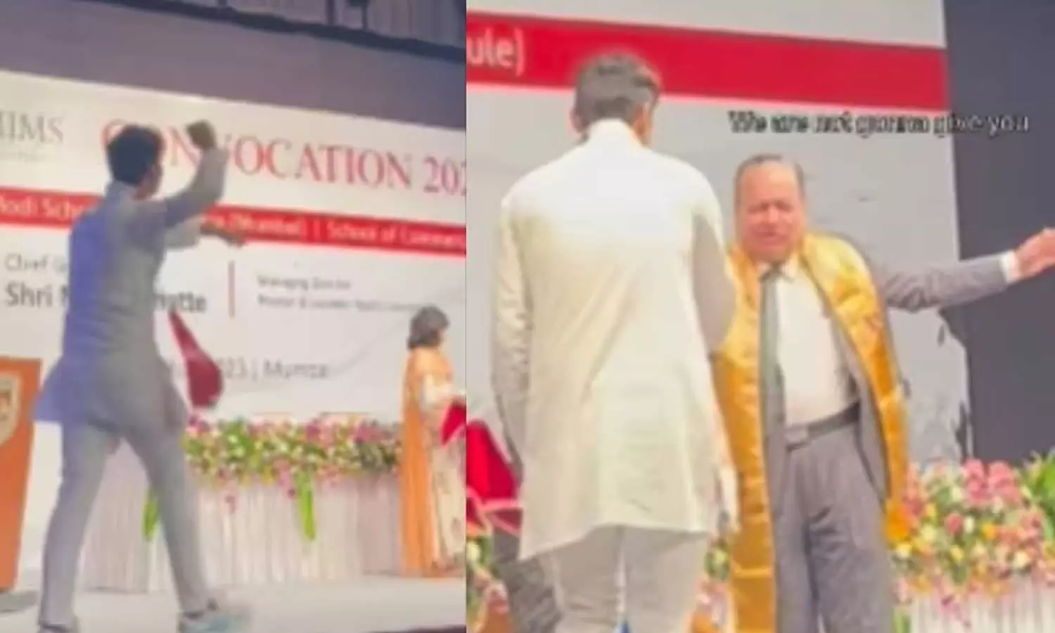 മുംബൈ: മൂന്ന് വർഷത്തെ കോളജ് പഠനത്തിന് ശേഷം ബിരുദം കൈയിൽ കിട്ടുന്ന ആ നിമിഷം വിദ്യാർഥികൾക്ക് പ്രിയപ്പെട്ടതാണ്. മുൻ കാലങ്ങളെ അപേക്ഷിച്ച് ബിരുദദാന ചടങ്ങുകൾ വളരെ ആഘോഷമായി ഇപ്പോൾ പല കോളജുകളും നടത്താറുണ്ട്. ജീവിതത്തിലെ ഏറ്റവും അവിസ്മരണീയമായ മുഹൂർത്തമല്ലേ, അതൊന്ന് ആഘോഷമാക്കാമെന്ന് കരുതിയ വിദ്യാർഥിക്ക് കിട്ടിയ പണിയാണ് ഇപ്പോൾ സോഷ്യൽമീഡിയിൽ വൈറലാകുന്നത്.