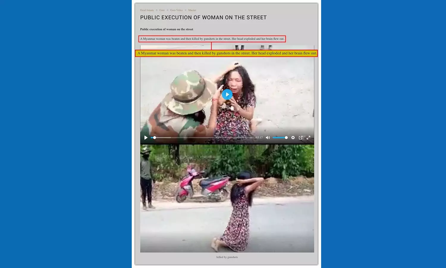 തുടർന്ന് ഈ സൂചനകൾ ഉപയോഗിച്ച് പ്രസക്തമായ വാർത്താ റിപ്പോർട്ടുകൾക്കായി നടത്തിയ വിശദമായ പരിശോധനയിൽ, നിരവധി സ്ക്രീൻഷോട്ടുകൾ ഉൾപ്പെടുത്തിയുള്ള 2022 ഡിസംബർ മുതലുള്ള റിപ്പോർട്ടുകൾ കണ്ടെത്തി. 2022 ഡിസംബർ മൂന്നിന് പ്രസിദ്ധീകരിച്ച “elevenmyanmar.com”ലെ ഒരു റിപ്പോർട്ട്, സംഭവം മ്യാൻമറിലെ തമു പട്ടണത്തിൽ നിന്നുള്ളതാണെന്ന് പറയുന്നു. ചാരവൃത്തിയാരോപിച്ചായിരുന്നു വധശിക്ഷ.