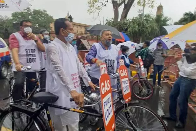 ഡെറിക് ഒബ്രിയൻ, കല്യാൺ ബന്ധോപാധ്യായ, അർപിത ഘോഷ്, നദീമുൽ ഹഖ്, ശാന്തനു സെൻ, അബിർ രഞ്ജൻ ബിശ്വാസ് എന്നിവരാണ് ഇന്ധനവില വർധനയ്ക്കെതിരെ പ്രതിഷേധവുമായി സൈക്കിൾ യാത്ര നടത്തിയത്. ജനങ്ങളെ കൊള്ളയടിക്കുന്ന കേന്ദ്ര സർക്കാർ നടപടിക്കെതിരെയുള്ള പ്ലക്കാർഡുകൾ തൂക്കിയ സൈക്കിളുകളിലായിരുന്നു ഇവർ പാർലമെന്റിലെത്തിയത്. പാർലമെന്റ് ഗേറ്റിനുമുൻപിൽ പ്രധാനമന്ത്രി നരേന്ദ്ര മോദിക്കെതിരെ മുദ്രാവാക്യവും മുഴക്കി.
