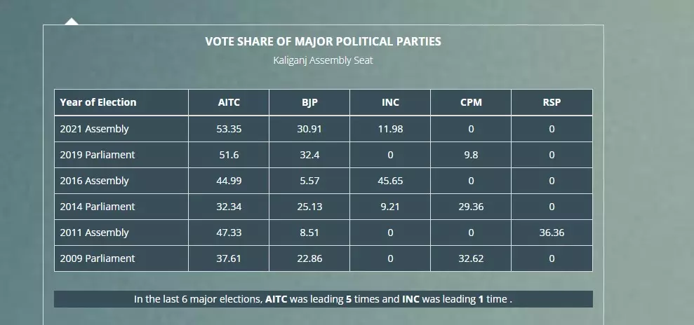 തുടര്ന്നാണ് ഉപതെരഞ്ഞെടുപ്പ് ആവശ്യമായി വന്നത്. 'ലാല് ദാ' എന്നറിയപ്പെട്ട അഹമ്മദിന് എഴുപത് വയസ്സായിരുന്നു. നിരവധി തവണ പശ്ചിമ ബംഗാള് അസംബ്ലിയില് കാളിഗഞ്ചിനെ പ്രതിനിധികരിച്ചിട്ടുണ്ട്.