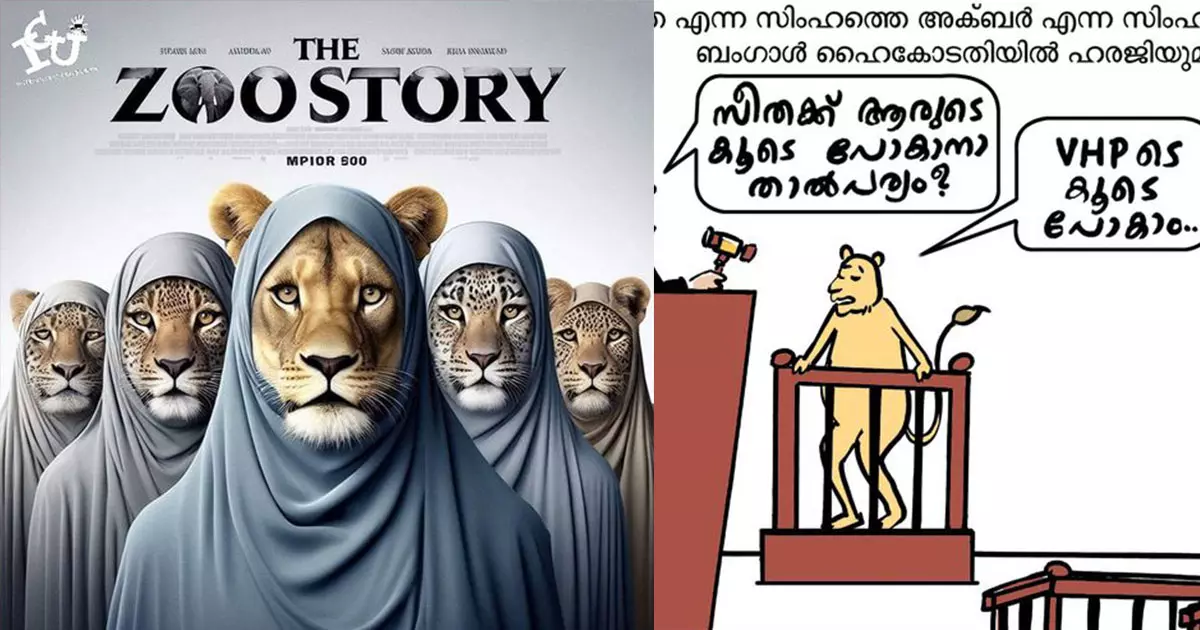 സീതക്ക് ആരുടെ കൂടെ പോകാനാണ് താൽപര്യമെന്ന് ജഡ്ജി ചോദിക്കുമ്പോൾ വിഎച്ച്പിയുടെ കൂടെയാണെന്ന് സീതാ സിംഹം പറയുന്നതും 'ങേ പോടീ അവിടുന്നെ'ന്ന് പറഞ്ഞ് വിഎച്ച്പി പ്രവർത്തകൻ ഓടുന്നതുമായ മാധ്യമം കാർട്ടൂണിസ്റ്റ് വി.ആർ രാഗേഷിന്റെ കാർട്ടൂണും പ്രചരിക്കുന്നുണ്ട്. മൃഗശാല കാണാൻ പോയ ഹിന്ദുത്വർ ജിറാഫിനെ ജാഫറെന്ന് അന്വേഷിക്കുന്ന ട്രോളും പ്രചരിക്കുന്നുണ്ട്. മൃഗശാലയിൽ വരെ മതപരമായ വേർതിരിവ് കൊണ്ടുവരുന്ന ഹിന്ദുത്വ ആശയത്തെയാണ് എല്ലാവരും കുറ്റപ്പെടുത്തുന്നത്.