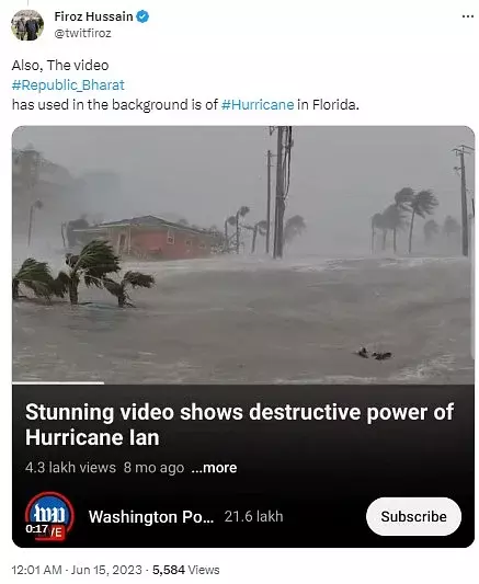 "ഞങ്ങൾ ഗുജറാത്തിലെ ദ്വാരകയിൽ എത്തി, ഇവിടെ ശക്തമായ കാറ്റ് വീശുന്നതിനാൽ നില്ക്കാന് പോലും സാധിക്കുന്നില്ല. 150 കിലോമീറ്റർ വേഗതയിൽ ഈ മേഖലയിലേക്ക് വരുന്ന ബിപർജോയ് ചുഴലിക്കാറ്റ് നിൽക്കാനും സംസാരിക്കാനും വെല്ലുവിളി ഉയർത്തുന്നു. തീരത്തിന് സമീപം പോകുന്നത് ഒഴിവാക്കുക. അതിനാൽ ജാഗ്രത പാലിക്കുക,” കാലാവസ്ഥാ റിപ്പോർട്ടിനിടെ ശ്വേത പറയുന്നത് കേൾക്കാം.ഈ നാടകീയതയുടെയും അമിതാഭിനയത്തിന്റെയും കാര്യമില്ലെന്നാണ് വീഡിയോ കണ്ടവരുടെ അഭിപ്രായം.