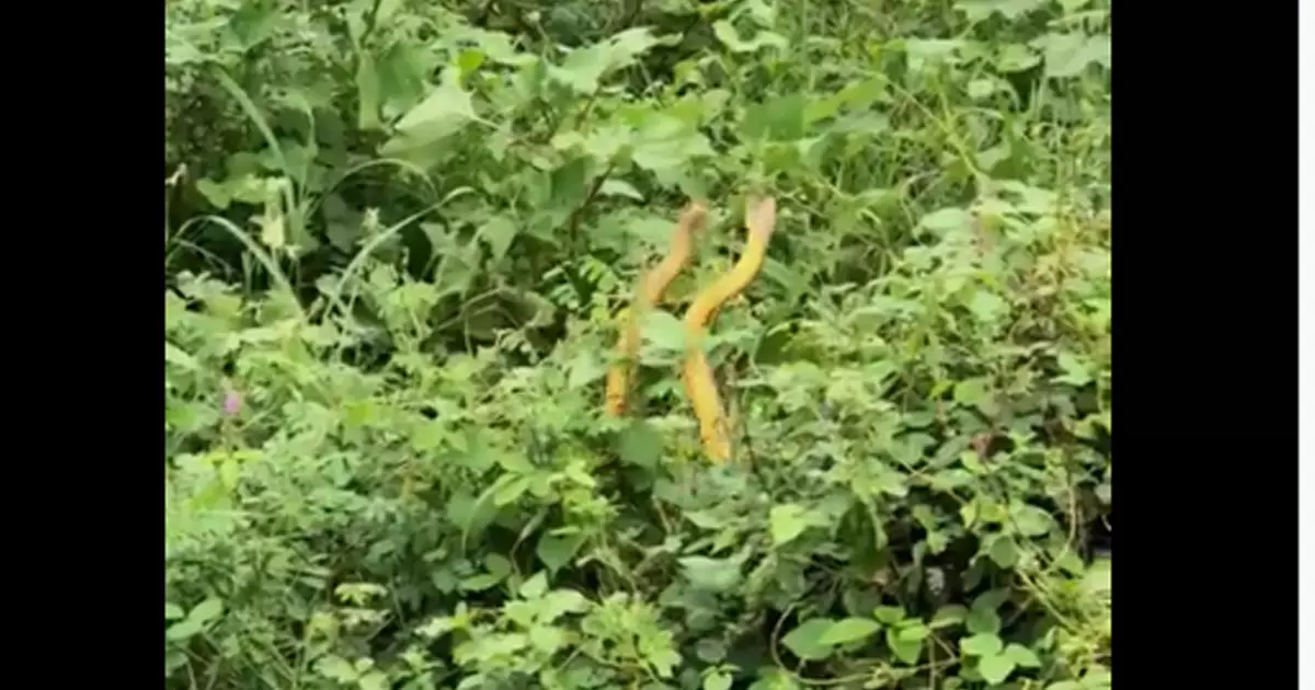 സോഹോ സി.ഇ.ഒ ശ്രീധര് വെമ്പുവാണ് ട്വിറ്ററില് വീഡിയോ പങ്കുവച്ചിരിക്കുന്നത്. തമിഴ്നാട്ടിലെ തെങ്കാശിയില് നിന്നാണ് വീഡിയോ പകര്ത്തിയിരിക്കുന്നത്. മഞ്ഞ നിറമുള്ള പാമ്പുകള് മഴയത്ത് നൃത്തം ചെയ്യുന്നത് വീഡിയോയില് കാണാം. വളരെ ആസ്വദിച്ചാണ് ഇവയുടെ നൃത്തം. പല പല സ്റ്റെപ്പുകള് മാറിമാറി പരീക്ഷിക്കുന്നുമുണ്ട്. '' ഇന്ന് തെങ്കാശിയില് കനത്ത മഴയ്ക്ക് ശേഷമുണ്ടായ പാമ്പുകളുടെ മനോഹരമായ നൃത്തം. നടക്കാന് പോകുമ്പോള് ഈ വീഡിയോ പകര്ത്തിയ @AksUnik നന്ദി'' എന്ന അടിക്കുറിപ്പോടെയാണ് ശ്രീധര് വീഡിയോ ഷെയര് ചെയ്തിരിക്കുന്നത്.
