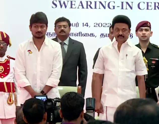രാജ്ഭവനിൽ നടന്ന ചടങ്ങിൽ ഗവർണർ ആർ.എൻ രവി സത്യവാചകം ചൊല്ലിക്കൊടുത്തു. മുഖ്യമന്ത്രി സ്റ്റാലിനും മന്ത്രിമാരും മുതിർന്ന പാർട്ടി നേതാക്കളും ചടങ്ങിൽ പങ്കെടുത്തു. യുവജനകാര്യവും കായികവുമാണ് ഉദയനിധിക്ക് നൽകിയിരുക്കുന്ന വകുപ്പുകൾ. .45കാരനായ ഉദയനിധി നിർമാതാവും നടനും കൂടിയാണ്.