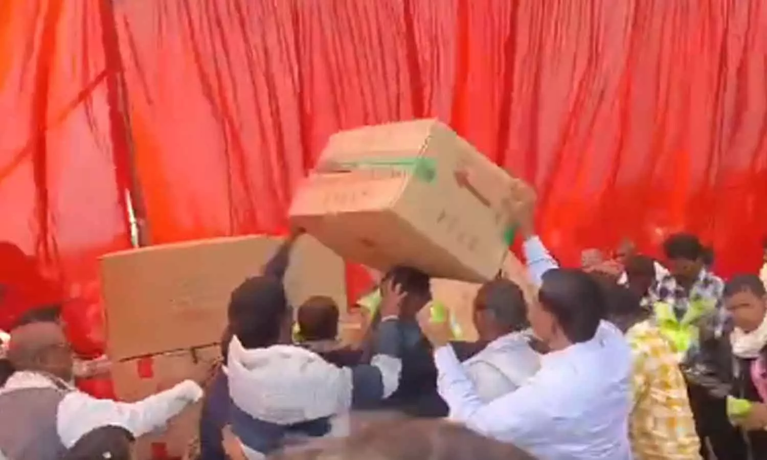 ഹാമിർപൂർ: ഉത്തർപ്രദേശിൽ സമൂഹവിവാഹവേദിയിൽ ചിപ്സ് പാക്കറ്റിനുവേണ്ടി തിക്കിത്തിരക്കി അതിഥികൾ. ചൊവ്വാഴ്ച ഹാമിർപൂർ ജില്ലയിലെ റാഠ് നഗരത്തിൽ ബ്രഹ്മാനന്ദ് മഹാവിദ്യാലയ ഗ്രൗണ്ടിലായിന്നു പരിപാടി. സംഭവത്തിൽ നിരവധിപേർക്ക് പരിക്കേറ്റു. അതിഥികൾ ചിപ്സ് പാക്കറ്റുകൾക്കായി തിക്കുംതിരക്കും കൂട്ടുന്നതിന്റെ വീഡിയോ ദൃശ്യങ്ങൾ സോഷ്യൽ മീഡിയയിൽ വ്യാപകമായി പ്രചരിക്കുന്നുണ്ട്.