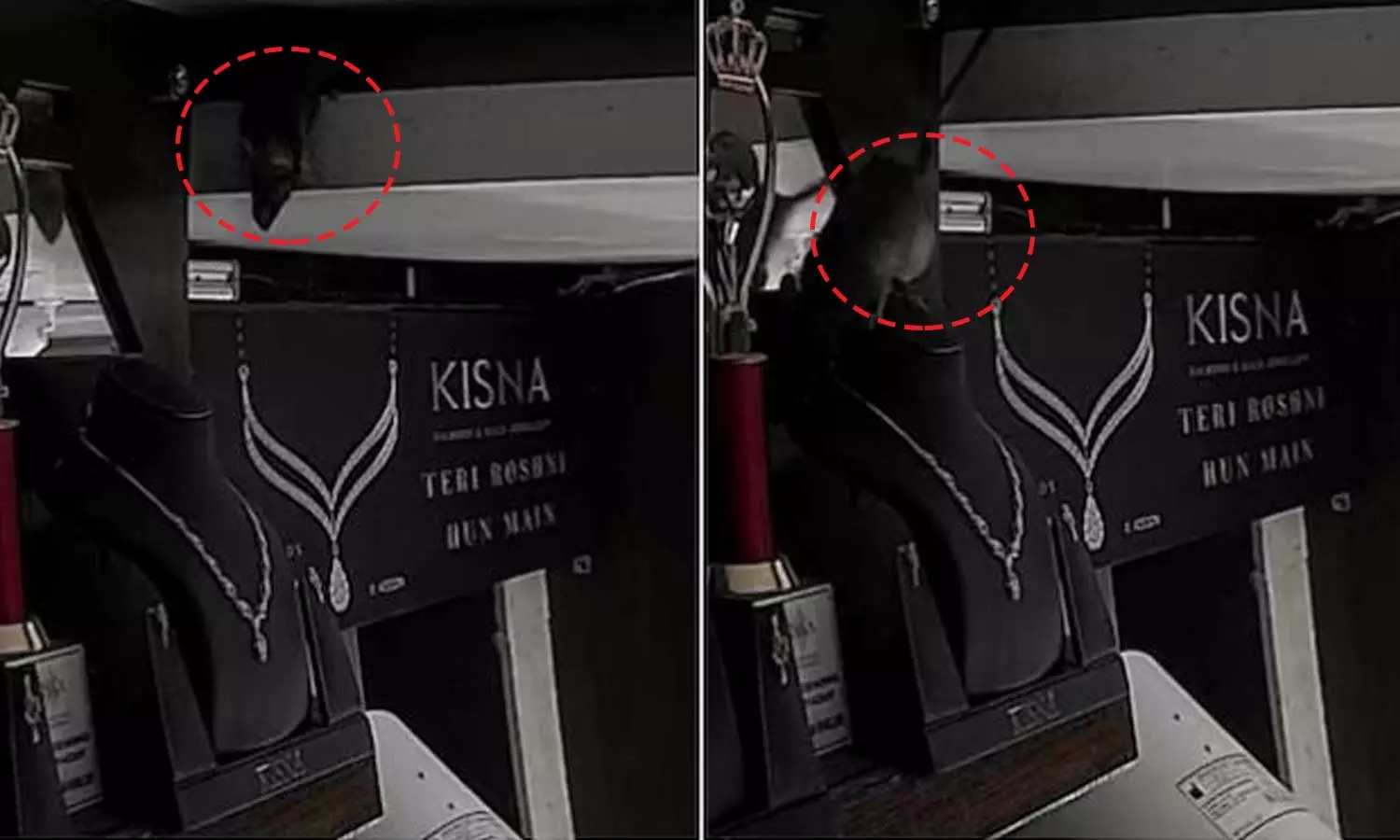 ജ്വല്ലറിയിൽ ഡിസ്പ്ലേ വെച്ചിരിക്കുന്ന ഡയമണ്ട് നെക്ലേസ് മോഷ്ടിക്കുന്ന എലിയുടെ സിസിടിവി ദൃശ്യങ്ങളാണ് ഇപ്പോൾ സോഷ്യൽമീഡിയയിൽ വൈറലായിരിക്കുന്നത്. 30 സെക്കൻഡ് ദൈർഘ്യമുള്ള സി.സി.ടി.വി ദൃശ്യങ്ങളിൽ, ഒരു ജ്വല്ലറിയിൽ പ്രദർശിപ്പിച്ചിരിക്കുന്ന മാല ഒരു എലി മോഷ്ടിക്കുന്നതായി കാണാം.